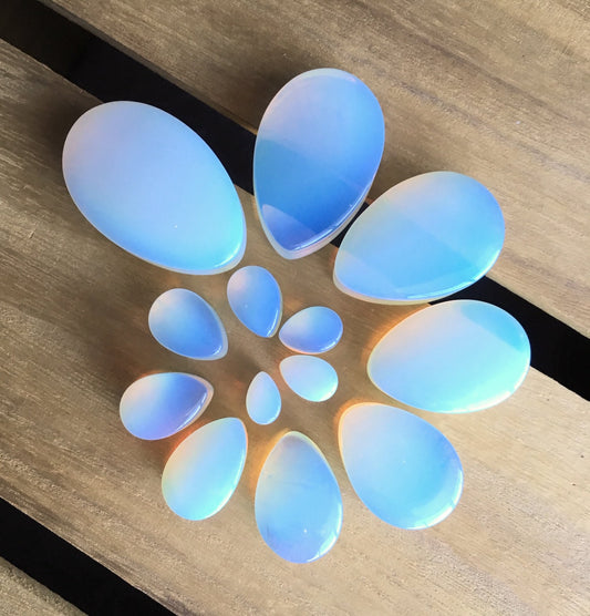 PAIR of Beautiful Opalite Teardrop Opalescent Stone Plugs - Gauges 8g (3mm) to 1&1/2" (38mm)