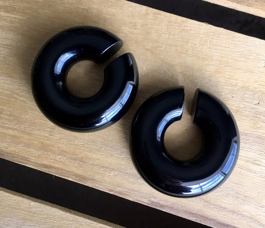 PAIR of Unique Organic Black Onyx Stone Hoops Ear Weight Hanging Plugs - Gauges 4g (5mm) up to 5/8" (16mm)