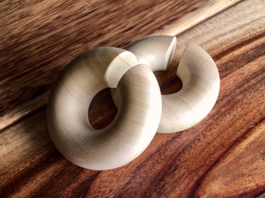 PAIR of Unique Organic Crocodile Wood Hoops Ear Weight Hanging Plugs - Gauges 2g (6mm) up to 5/8" (16mm)