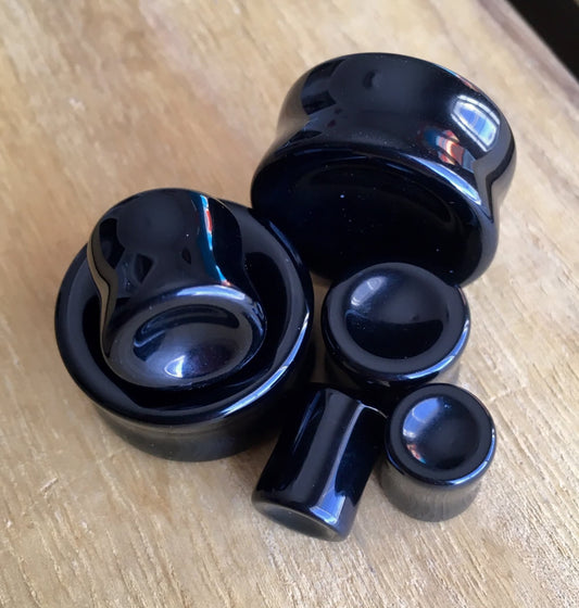 PAIR of Beautiful Organic Concave Black Onyx Stone Plugs - Gauges 0g (8mm) up to 1" (25mm)