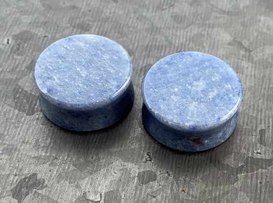 PAIR of Stunning Blue Aventurine Natural Organic Stone Double Flare Stone Plugs Tunnels Gauges Body Jewelry