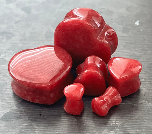 PAIR of Unique Heart Shaped Red Jade Organic Stone Plugs - Gauges 2g (6mm) up to 1" (25mm)
