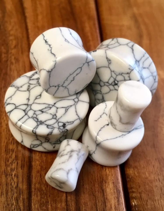 PAIR of White Howlite Stone Plugs Tunnels Earlets Gauges Body Jewelry