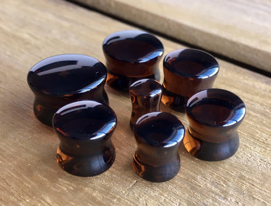 PAIR of Stunning Smoke Topaz Glass Double Flare Plugs Tunnels Gauges Body Jewelry
