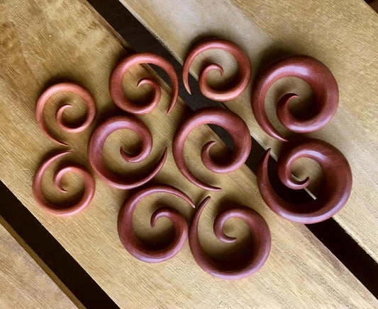 PAIR of Stunning Organic Sawo Wood Spiral Tapers - Gauges 4g (5mm) up to 1/2" (12mm)