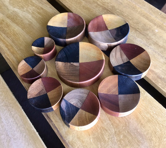 PAIR of Unique Organic Concave Sawo, Jackfruit, Areng, Teak Quarters Wood Plugs - Gauges 1" (25mm) thru 2" (51mm)