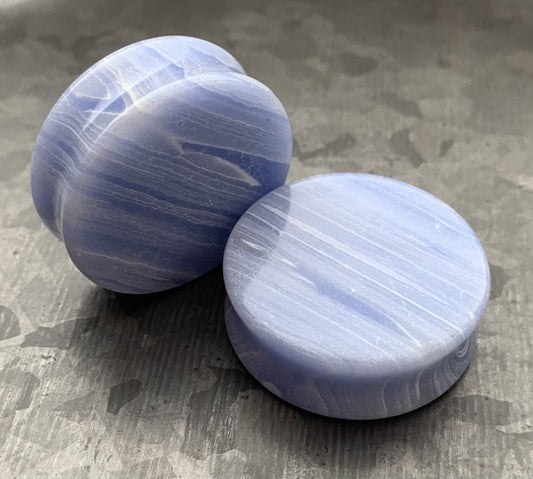 Pair of Unique Blue Lace Agate Stone Double Flare Plugs - Gauges 2g(6.5mm) through 1&1/4"(32mm)