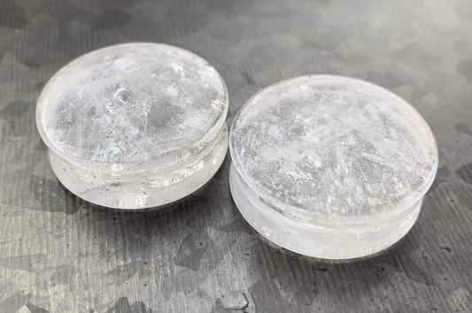 PAIR of Stunning Clear Quartz Natural Organic Stone Double Flare Plugs - Gauges 2g (6.5mm) thru 1&1/4" (32mm)