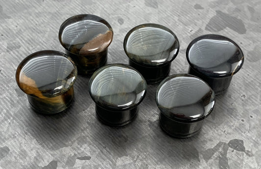 PAIR of Beautiful Blue Tiger Eye Single Flare Organic Stone Plugs with O-Rings - Gauges 4g (5mm) up to 5/8" (16mm)