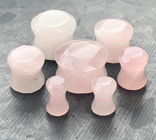 PAIR of Beautiful Faceted Organic Rose Quartz Stone Double Flare Plugs - Gauges 4g (5mm) through 5/8" (16mm)