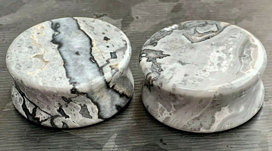 PAIR of Unique Organic Natural Wave Jasper Stone Double Flare Plugs - Gauges 2g (6mm) up to 1" (25mm)