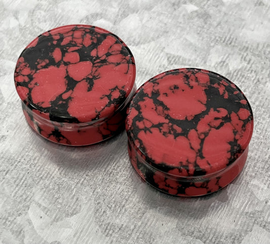 PAIR of Unique Black & Red Synthetic Imperial Turquoise Double Flare Plugs/Tunnels - Gauges 2g (6mm) thru 1" (25mm)