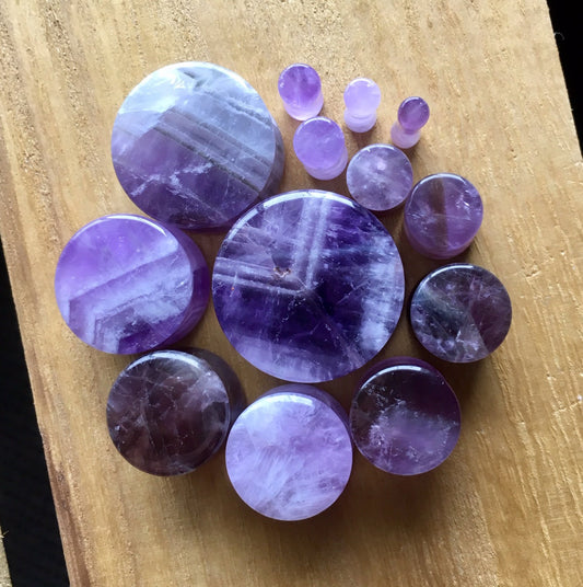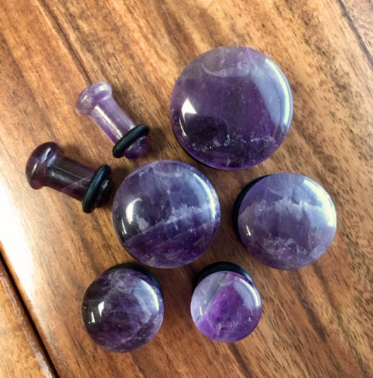 PAIR of Single Flare Organic Amethyst Stone Plugs Gauges Tunnels