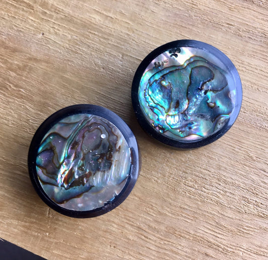 PAIR of Stunning Organic Horn with Abalone Inlay Plugs - Gauges 4g (5mm) up to 1" (25mm)