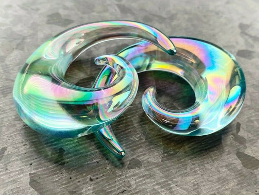 PAIR of Stunning Clear Lucifer Glass Spiral Taper Plugs - Expanders - Gauges 8g (3mm) thru 5/8" (16mm)