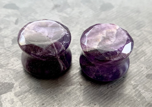 PAIR of Stunning Faceted Organic Amethyst Stone Double Flare Plugs Tunnels Gauges Body Jewelry