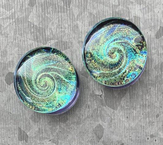 PAIR of Stunning Blue Vortex Swirl Design Pyrex Glass Double Flare Plugs/Tunnels - Gauges 2g (6mm) through 1" (25mm)