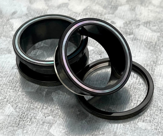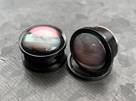 PAIR of Unique Iridescent Shell Black Screw Fit Tunnels/Plugs - Gauges 0g (8mm) thru 5/8" (16mm)