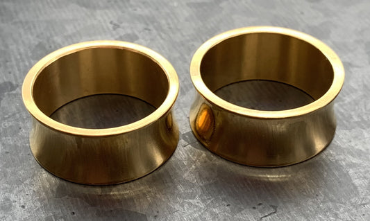 PAIR of Stunning Gold Saddle Double Flare Tunnels/Plugs - Gauges 2g (6mm) thru 1" (25mm)