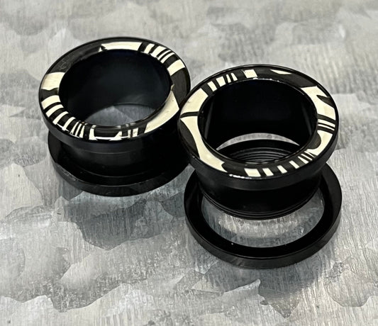 PAIR of Unusual Zebra / White Tiger Print Acrylic Screw Fit Tunnel Plugs - Gauges 2g (6mm) thru 5/8" (16mm)