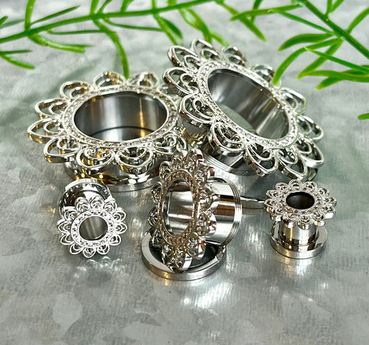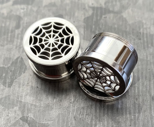 PAIR of Stunning Spider Web Steel Screw Fit Tunnels/Plugs - Gauges 2g (6mm) thru 5/8" (16mm)