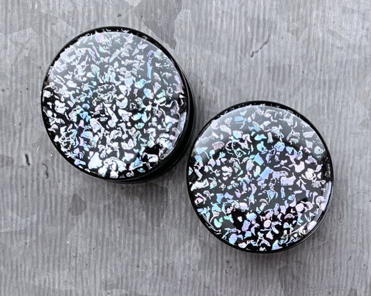 PAIR of Unique Rainbow Fossil Stainless Steel Black Screw Fit Tunnels / Plugs - Gauges 2g (6mm) thru 1" (25mm)