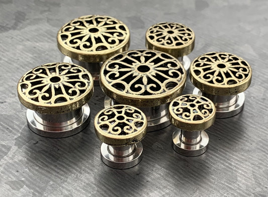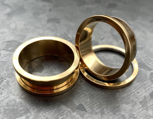 PAIR of Beautiful Gold Ion Plated 316L Steel Screw Fit Tunnels/Plugs - Gauges 16g (1.2mm) thru 1" (25mm)