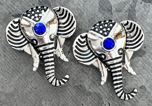 PAIR of Stunning Elephant with Sapphire Blue CZ Gem Top Gold or Steel Screw Fit Tunnel/Plugs