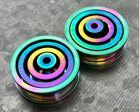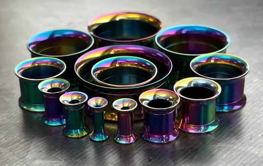 PAIR of Beautiful Rainbow PVD Plated 316L Surgical Steel Internally Threaded Tunnels/Plugs - Gauges 8g (3mm) thru 1" (25mm)