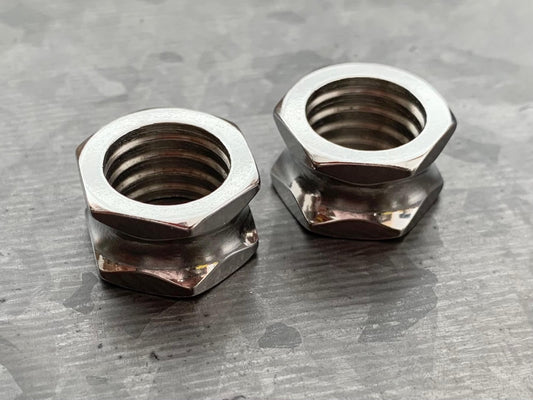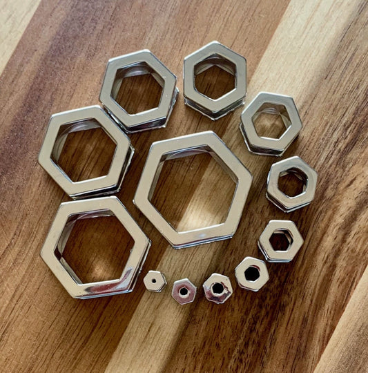 PAIR of Stunning 316L Surgical Steel Hexagon Bolt Double Flare Tunnels - Gauges 2g (6mm) thru 5/8" (16mm)