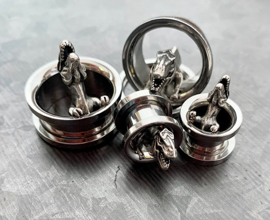 PAIR of Unique T-Rex Surgical Steel Screw Fit Tunnels/Plugs - Gauges 00g (10mm) up to 3/4" (19mm)