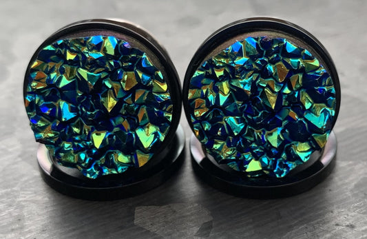 PAIR of Unique Synthetic Druzy Stone Steel Screw Fit Tunnels/Plugs - White or Blue - Gauges 2g (6mm) thru 5/8" (16mm)