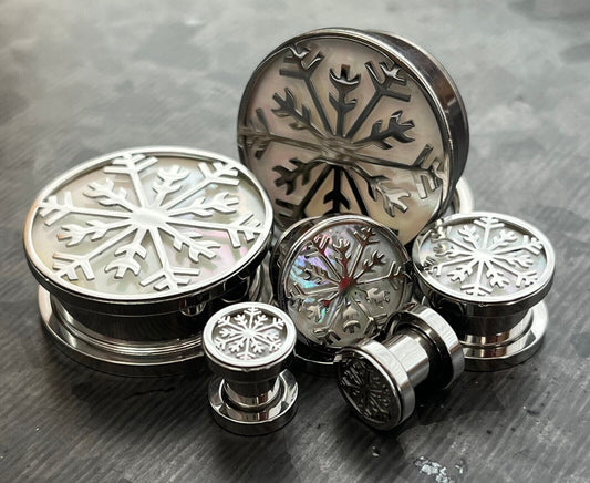 PAIR of Iridescent Snowflake Steel Screw Fit Tunnels/Plugs - Gauges 0g (8mm) thru 1" (25mm)