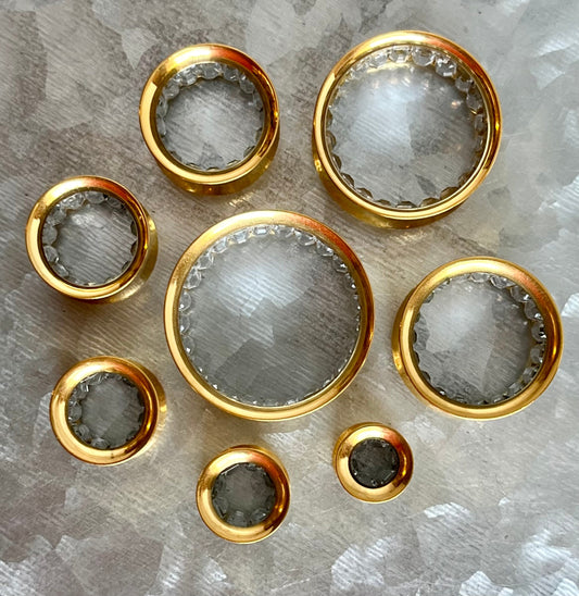 PAIR of Stunning Gold Ion Plated Steel Saddle Tunnels with CZ Inner Gems