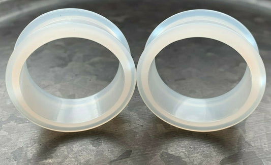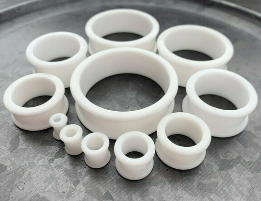 PAIR of Brilliant Bright White Silicone Double Flare Tunnels - Gauges 2g (6mm) up to 2" (51mm)