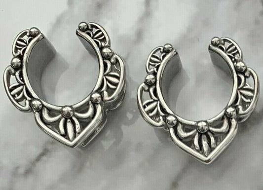 PAIR of Unique Saddle Surgical Steel Ear Spreaders Silver Hanger-Tunnels/Plugs - Gauges 00g (10mm) thru 1" (25mm)