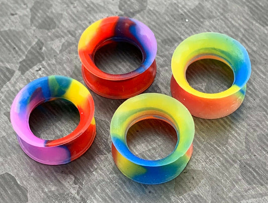 PAIR of Unique Rainbow Swirl Ultra Thin Silicone Double Flare Tunnels/Plugs - Gauges 4g (5mm) thru 7/8" (22mm)