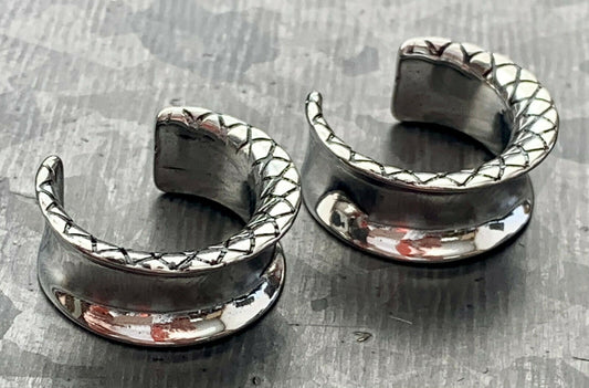 PAIR of Unique Snake Skin Style Surgical Steel Saddle Ear Spreaders Plugs - Gauges 2g (6.5mm) thru 3/4" (19mm)
