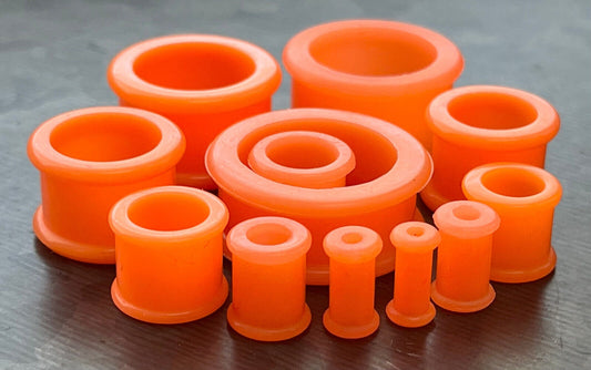 PAIR of Bright Orange Silicone Double Flare Tunnels - Gauges 6g (4mm) up to 1" (25mm)