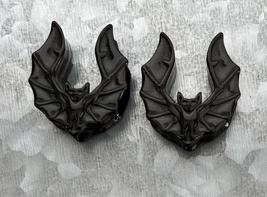 PAIR of Unique Black Bat Saddle Gothic Ear Spreader Surgical Steel Tunnels/Plugs - Gauges 0g (8mm) through 1" (25mm)