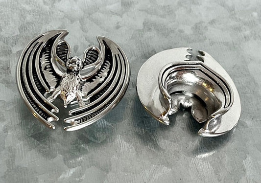 PAIR of Unique Flying Bat Saddle Surgical Steel Ear Spreader Hanger-Tunnels/Plugs - Gauges 0g (8mm) thru 3/4" (19mm)