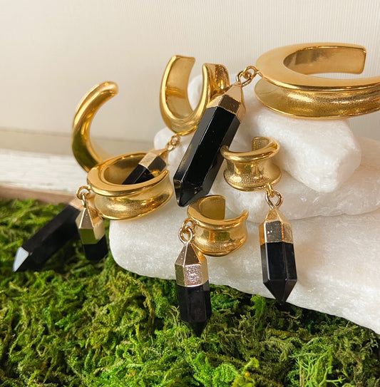 Pair of Stunning Black Hexagonal Dangle Saddle Ear Spreader -Tunnels/Plugs - Gauges 00g (10mm) thru 1" (25mm)