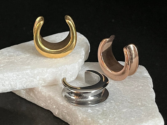 Pair of Beautiful Rose Gold Saddle Surgical Steel Ear Spreaders Hanger-Tunnels/Plugs - Gauges 00g (10mm) thru 1" (25mm)