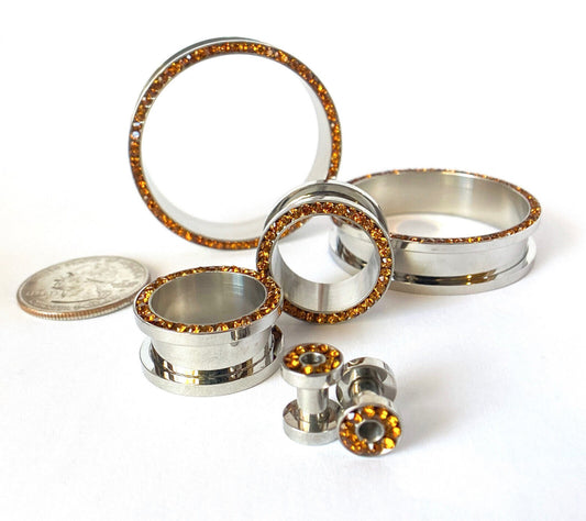 PAIR Topaz CZ Gem Rimmed 316L Surgical Steel Screw Fit Tunnels Plugs Gauges