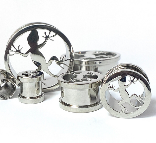PAIR Lizard Steel Screw Fit Tunnels Plugs Earlets Gauges Gecko Body Jewelry