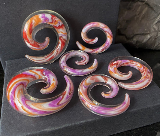 PAIR Multicolor Swirl Glass Spiral Tapers Expanders Plugs Gauges Body Jewelry