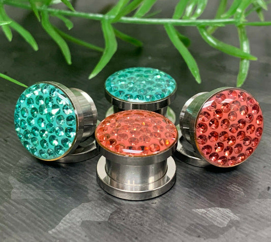 PAIR Epoxy Coated Ferido Gems Screw Fit Plugs Tunnels Earlets Gauges