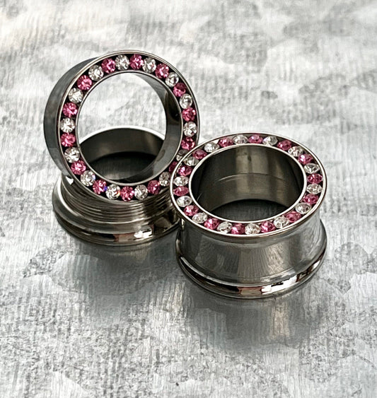PAIR Internally Threaded Gem Rimmed Double Flare Tunnels Plugs Earlets Gauges