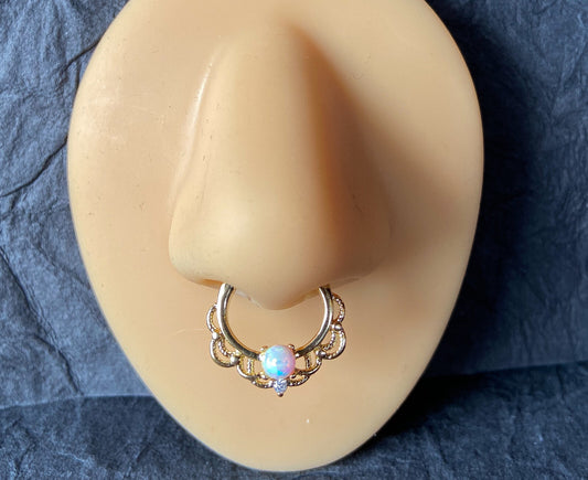 3pc Value Pack: 16g Opal / CZ Gem / Rope Septum Clicker Rings, w/free Retainer!