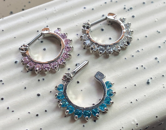 1pc Alternating Color Gems Septum Clicker 316L Surgical Steel 16 gauge Nose Ring